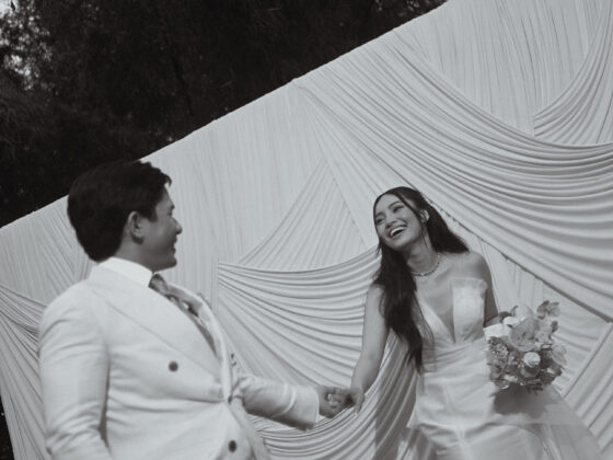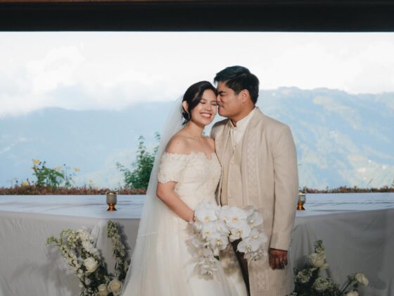 Valeen tells Wedding Essentials, “I had the best suppliers. I love how intimate our wedding was, no rough edges, and everything was seamless and perfect! Our friends and family also understood the assignment to just simply have fun.” She shared her list of suppliers, including wedding planner Cha Andrada, High Impact Events Enterprise for the lights and sounds, Cakesmiths Manila for the wedding cake jars, Rustic Creations by Anj for the principal sponsors’ gifts. The bride’s jewelry is from Arca Bespoke, while their wedding bands are by Liya Fine Jewelry.
