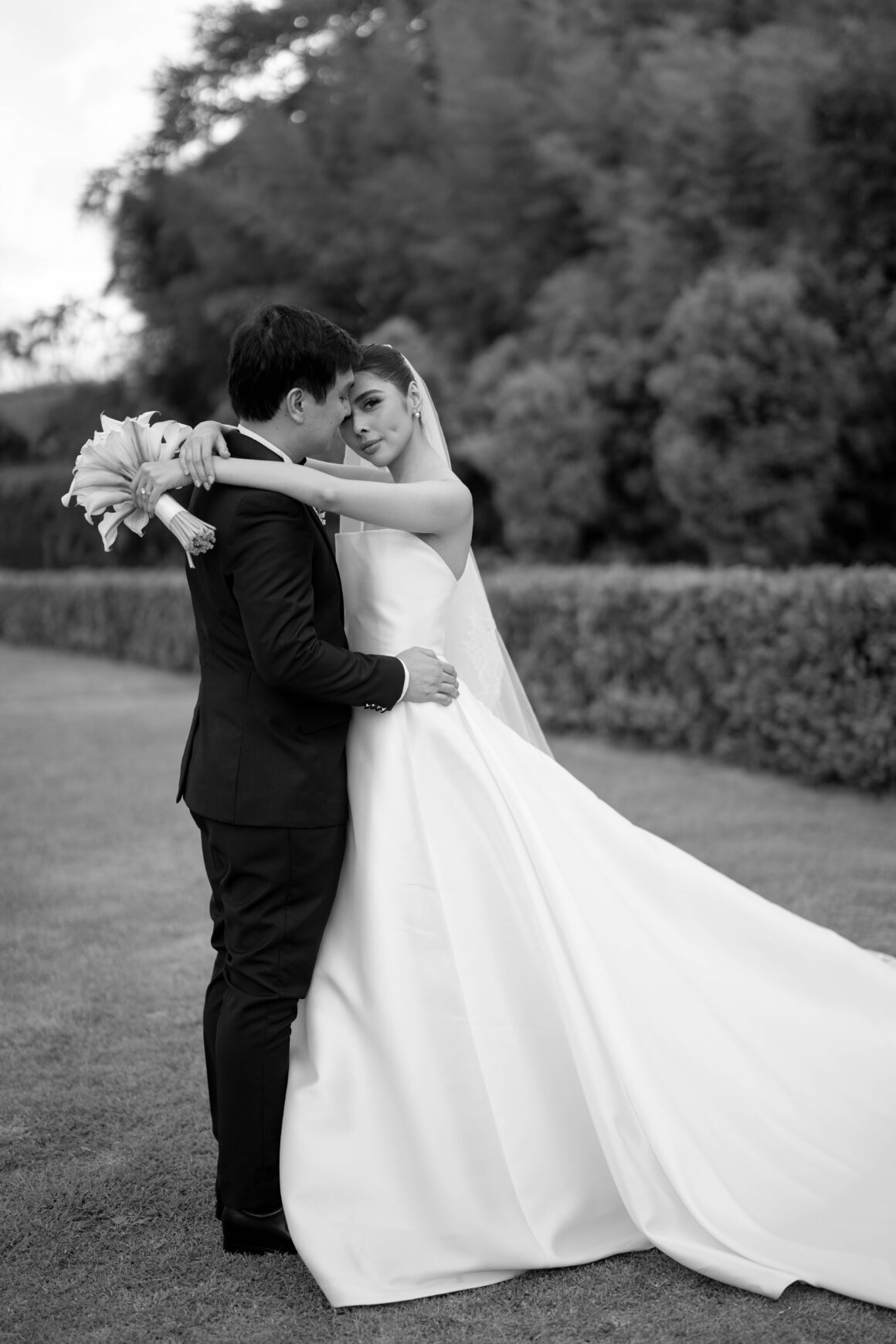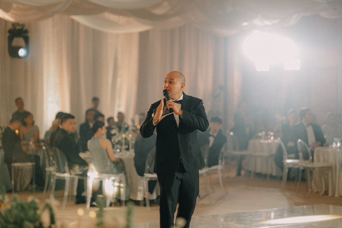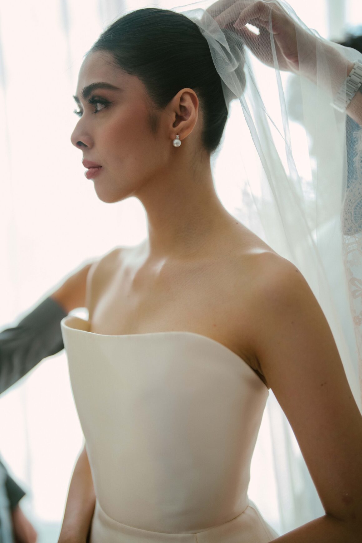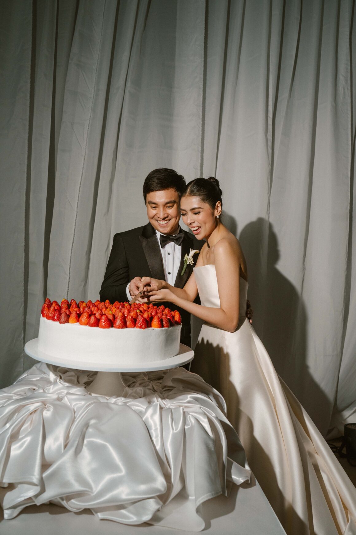 Kepvin and Maze’s Dream Team: Coordinator / planner: Voltaire Zalamea | Church: St. Joseph the Worker | Venue and Food: Hilton Clark | florist / Event Styling: Badang Rueda | Photography: Jaja Samaniego | Videography: Amady Manila | Host: Eri Neeman | Hair: Aries Manal | Makeup: Mark Qua | Entourage make-up: Anna Tiglao , Karla Ferreras and Ralph Sapno | Bridal gown: Debutante Bkk |Bridesmaids’ gowns: Mich Viray | Groom’s suit, flower girls’ dresses, bridal robe, and after-party dress: Dore Bridal Co | Singer: Jemma Catuns | Band: Mahestra PH Official | DJ: Adams Cabrera | Cake and souvenirs: Caking Giant | Photobooth: Beyond The Booth PH | Bloom bar: Panand Charlie PH Hyanneyyy | Lights / sounds: Cuatro Sprolights and Sounds | Invites and souvenir prints: Print and Company | Table number prints: Print Side Studio | Thank you and menu cards: 952 Printing Services | VIP souvenirs: Patisserie Le Choux Colat | Sugar cookies: Love at 1stbite_ | Creative Designs for prints: Erica Panganiban