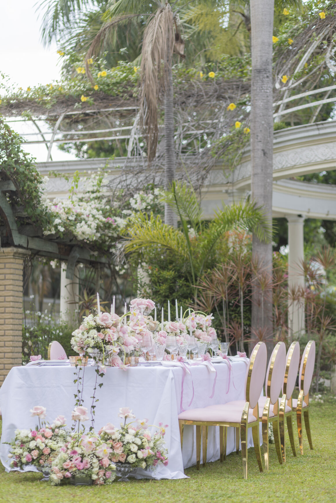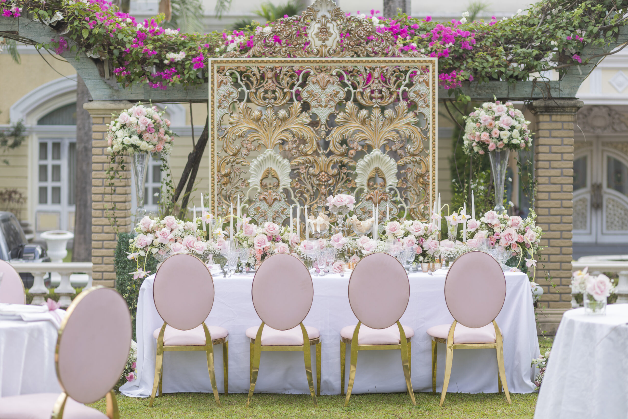 Step into a world of romance, regality, and rapture—where every petal, pillar, and pastel hue whispers timeless elegance. For this Dream Theme, veteran event stylist Badang Rueda masterfully transforms a garden into a Bridgerton-inspired wonderland, channeling the opulence and charm of the beloved period drama.