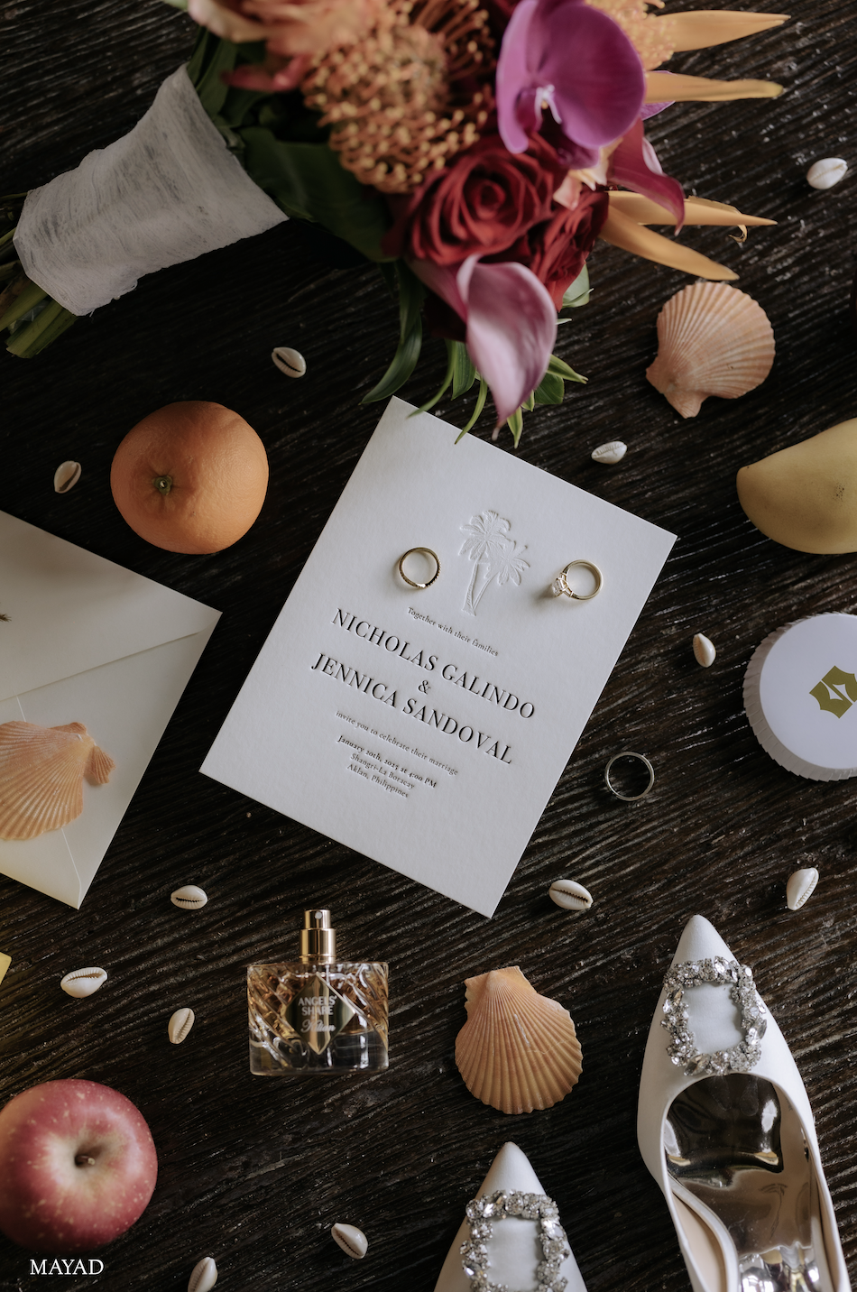 Nick and Jennica’s Dream Team: Ceremony and Reception: Shangri-la Boracay | Wedding Planner: Teena Barretto | Cake: Shangri-la Boracay | Invites: Inkscribler | Photographer: Mayad Studios | Videographer: Mayad Studios | Gown designer: Ingrid Olic | Suit designer: AJ Javier | Makeup artist: Joyce Solar | Violinist: Dean Joshua | Host: Andrew Wolff | Flowers: Florista Flowershop Boracay | Spincam: Spincam Boracay | DJ: Warren Neil