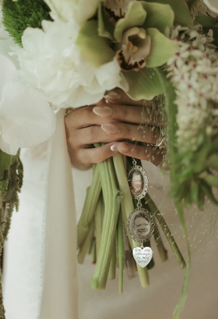 Family and meaning were woven into every detail. Chris’s late father was lovingly remembered through a special photo tribute, and Hillary carried portraits of her grandparents in her bouquet.