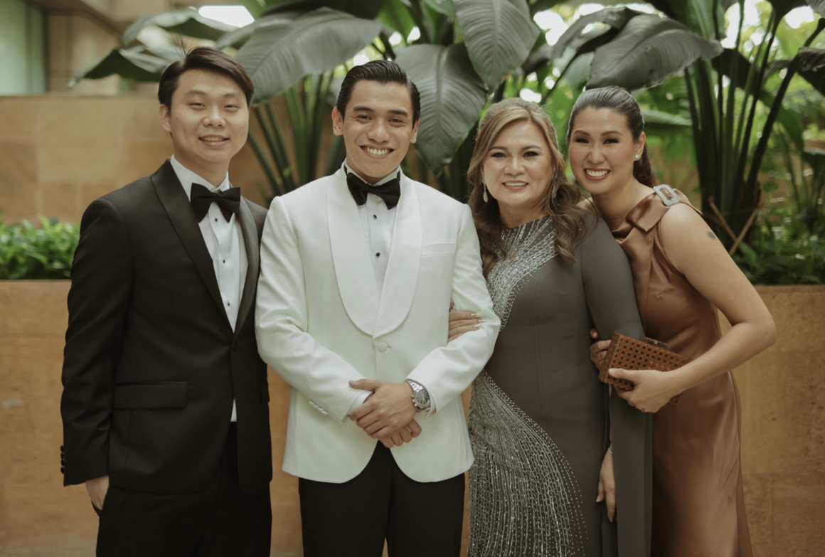 Christian and Hillary’s Dream Team: Ceremony Venue: Grand Hyatt Garden Pavilion | Reception Venue & Caterer: Grand Hyatt Ballroom | Afterparty Venue: Grand Hyatt Penthouse | Officiating Pastor: Peter Tan Chi Jr. | Wedding Planner / Coordinator: Teena Barretto | Host: Justin Quirino | Event Styling / Florals: Jos Curates Nikki Chatto | Lights & Sounds: DNA Lights and Sounds, Forscink | Animator: Always in Motion Live | Bride’s Gown: Carlo Angelo Niu | Bridesmaids’ Dresses: Dresses by Laila Ramos | Groom’s Suit: Jason Ciprianni | Hair & Makeup: John Pagadu Kierlo Velasco Photography: Proudrad and Paparazzzzzi | Videography: Mayad Studios | Branding & Identity: Fran Lagmay | Souvenirs: Sky and Co_ Condition PH | Wedding Newsletter & Merch: Designed by the bride’s sister, Hannah | Photobooth: For Keep Sakes Photobooth | Drinks / Mobile Bar: Manila Craft | Food Carts: Sam Garcia, Araro Gelato Cafe Eclater Dimsum Manila
