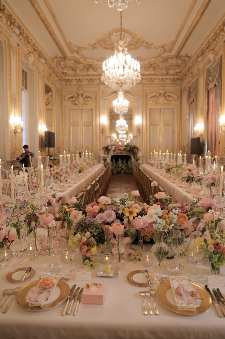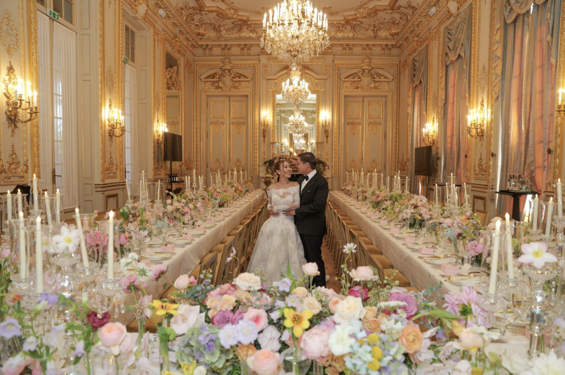 The couple’s wedding was held in the City of Love—Paris. Inspired by the romantic elegance of a Parisian fairytale, they chose a soft pastel palette and hosted their celebration at the iconic Shangri-La Paris.