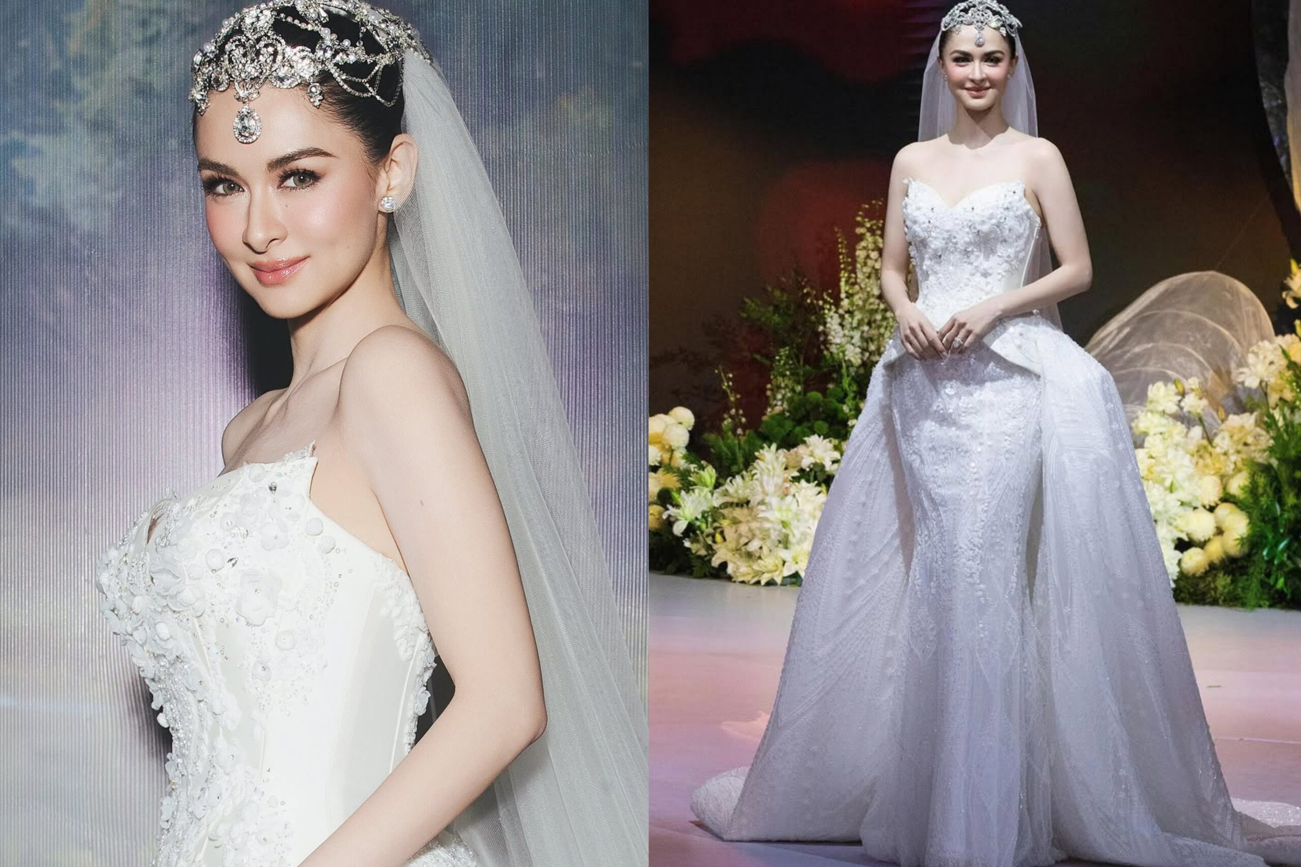 Closing the show in a breathtaking white bridal gown, Marian embodied the essence of timeless romance. The figure-hugging creation featured a sweetheart neckline, exquisite beadwork, and embroidery that shimmered under the lights, each step radiating her signature poise and grace.