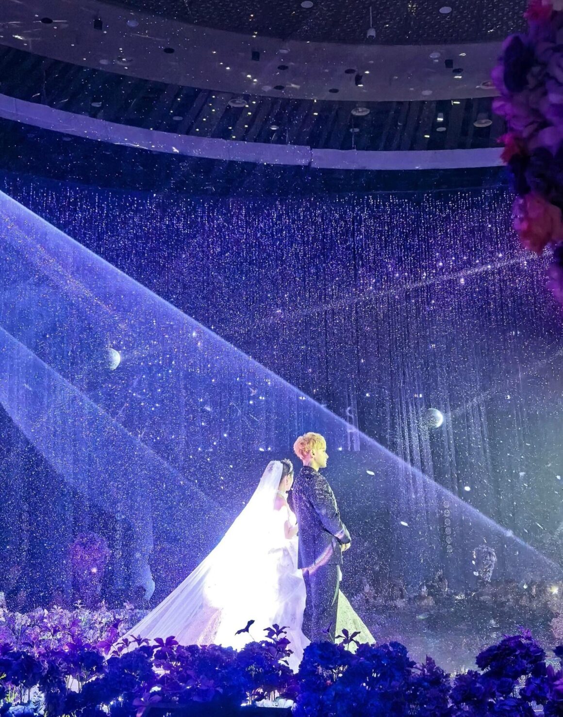 Tao, ever the dashing groom, complemented her radiance in a sharply tailored ivory suit that reflected both timeless elegance and star-like luminosity.