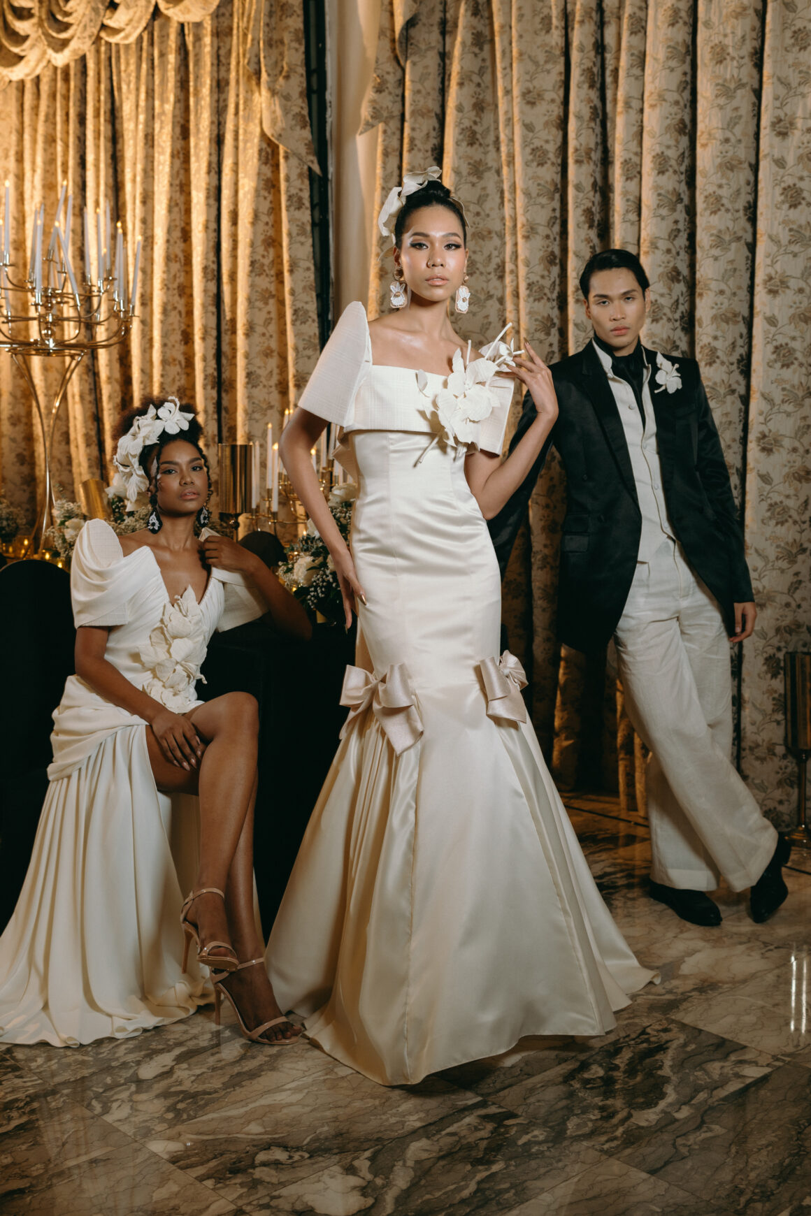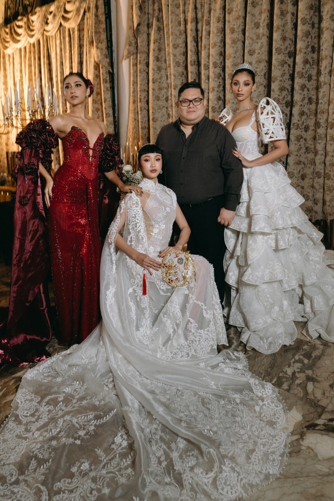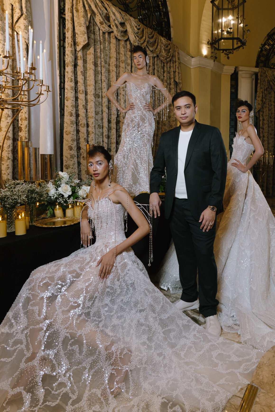 Erik Castelo’s Orientalia merges oriental opulence with Filipino sentiment, creating gowns that feel both regal and intimate. Rich textures, fluid draping, and cultural detailing reflect the pride of Iloilo’s rising star. His debut signals a designer destined to shape the future of Philippine bridal fashion.