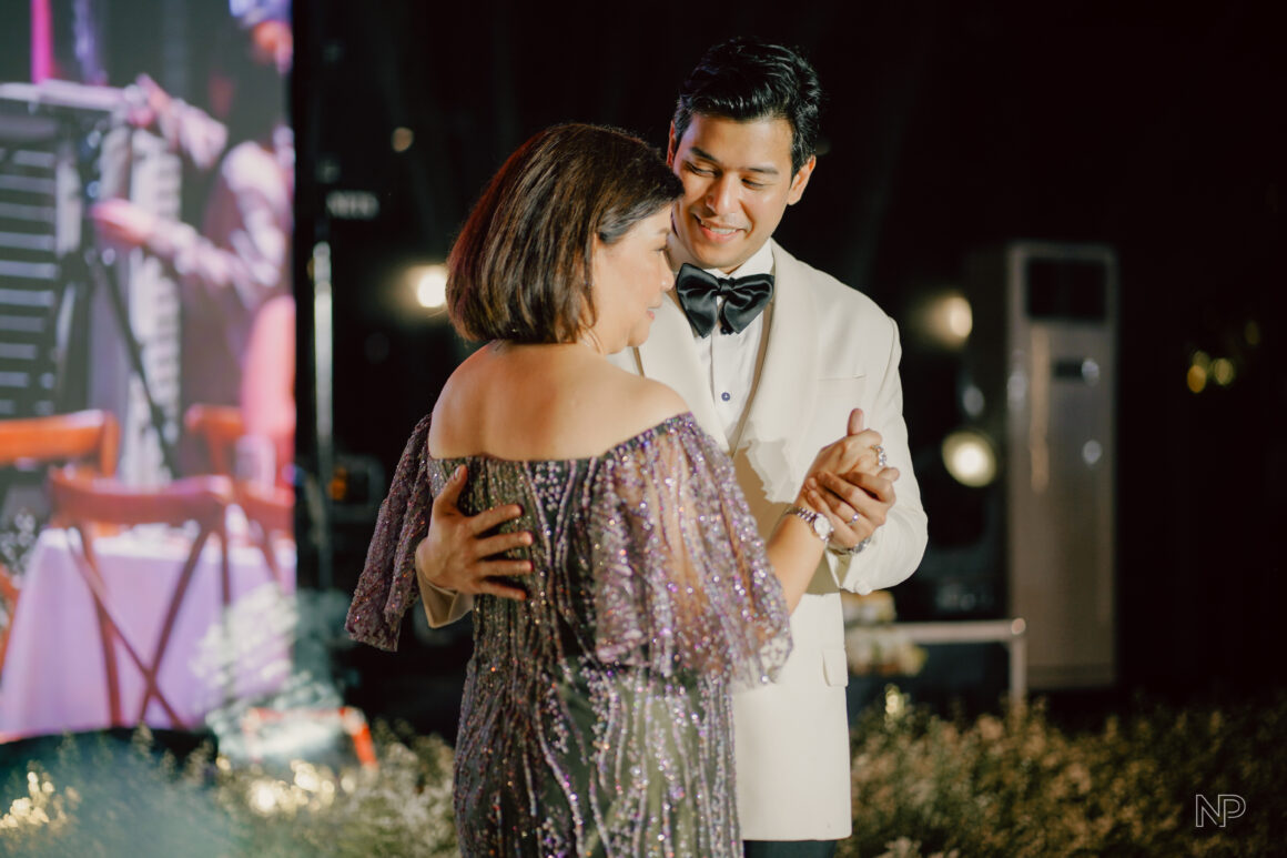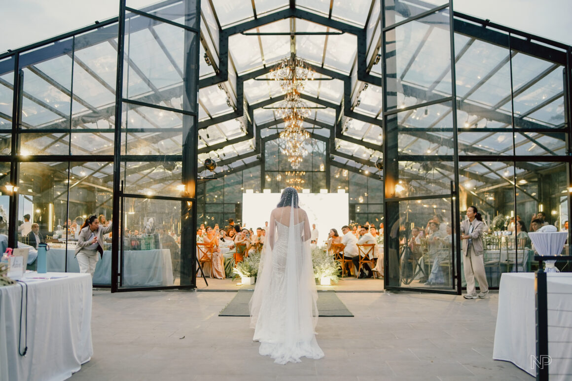 As night fell, guests gathered at the stunning glasshouse of The Barn at Mango Ranch for the reception. The American-inspired venue glowed with warmth as Alyana and Bryan changed into their second looks, she in a strapless, sparkly dress that shimmered under the lights, and he in a sharp black-and-white suit.