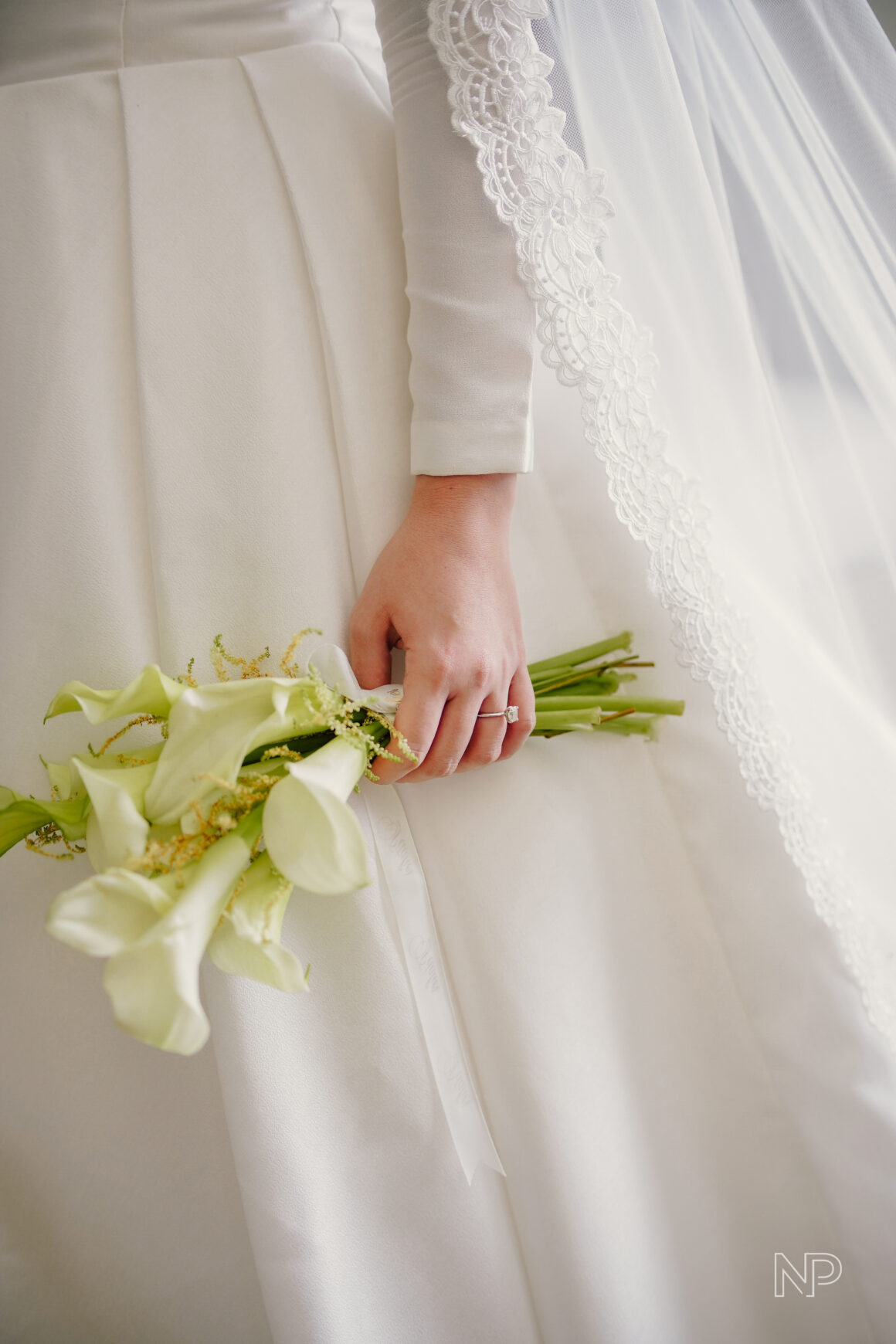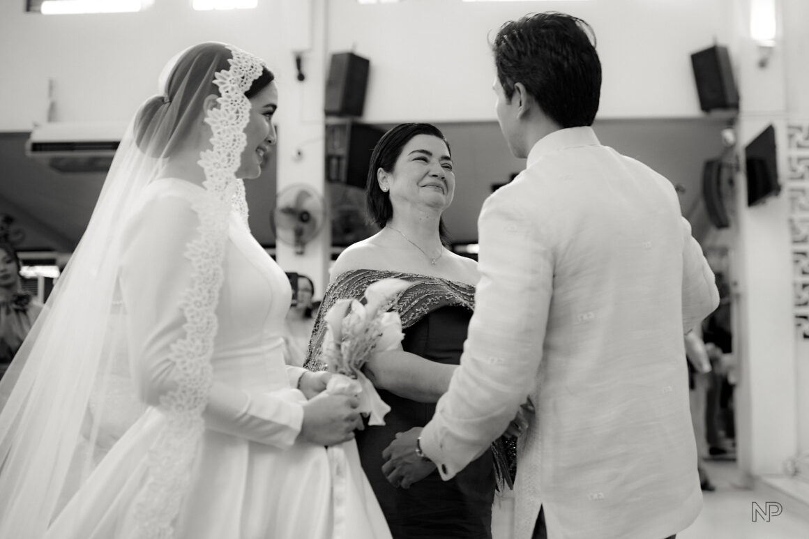 The wedding weekend opened with a solemn and elegant Catholic ceremony. The bride walked down the aisle in a long-sleeved A-line gown, finished with a lace-trimmed cathedral-length veil, timeless, serene, and radiant.