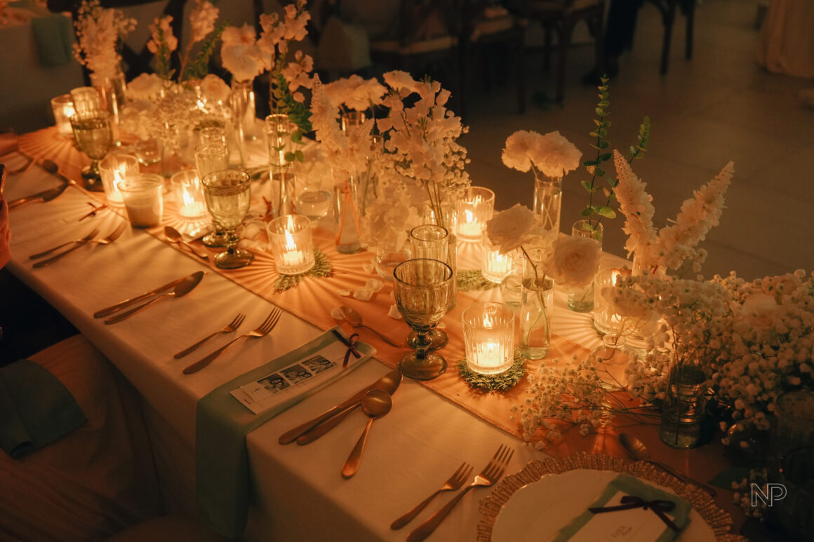 The reception that followed felt less like a program and more like a heartfelt family dinner. Long tables, warm draping, music, and rain-soaked joy defined the night. “We just enjoyed the moment and had fun together,” Thea says.