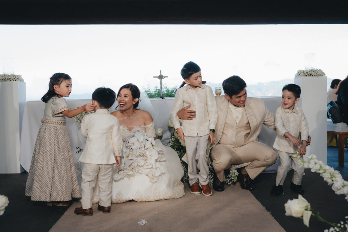 They chose Baguio for their wedding, a place rich in Karmel’s childhood memories and meaningful to her family. Their ceremony honored faith and Filipino tradition, from the veil and cord rituals to heirlooms worn with pride, Karmel in her mother’s wedding gown, lovingly restored, and Karlo in pieces passed down through generations.