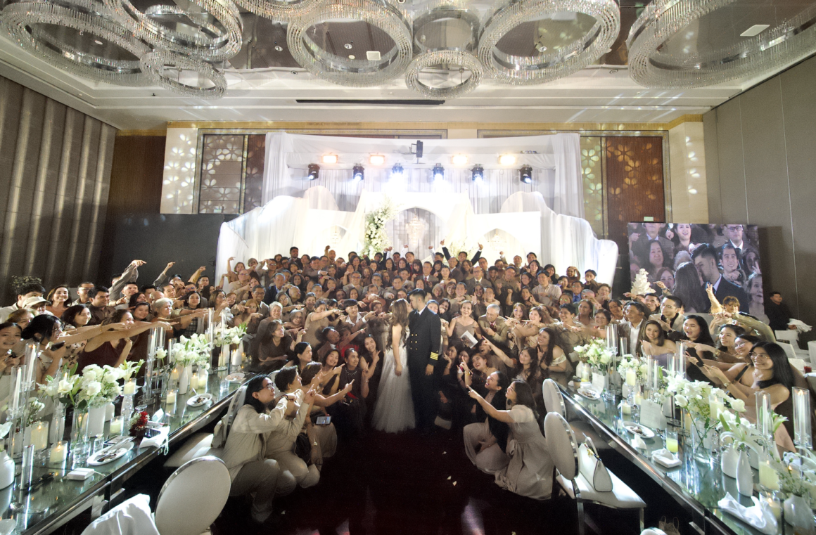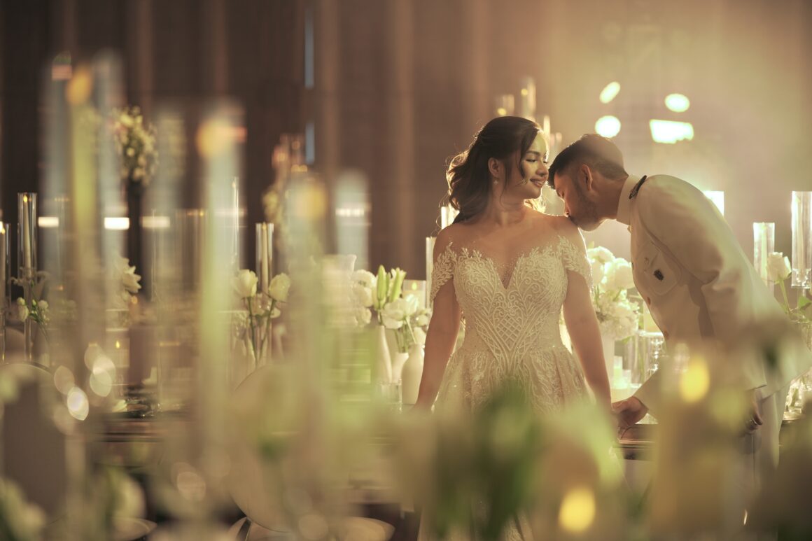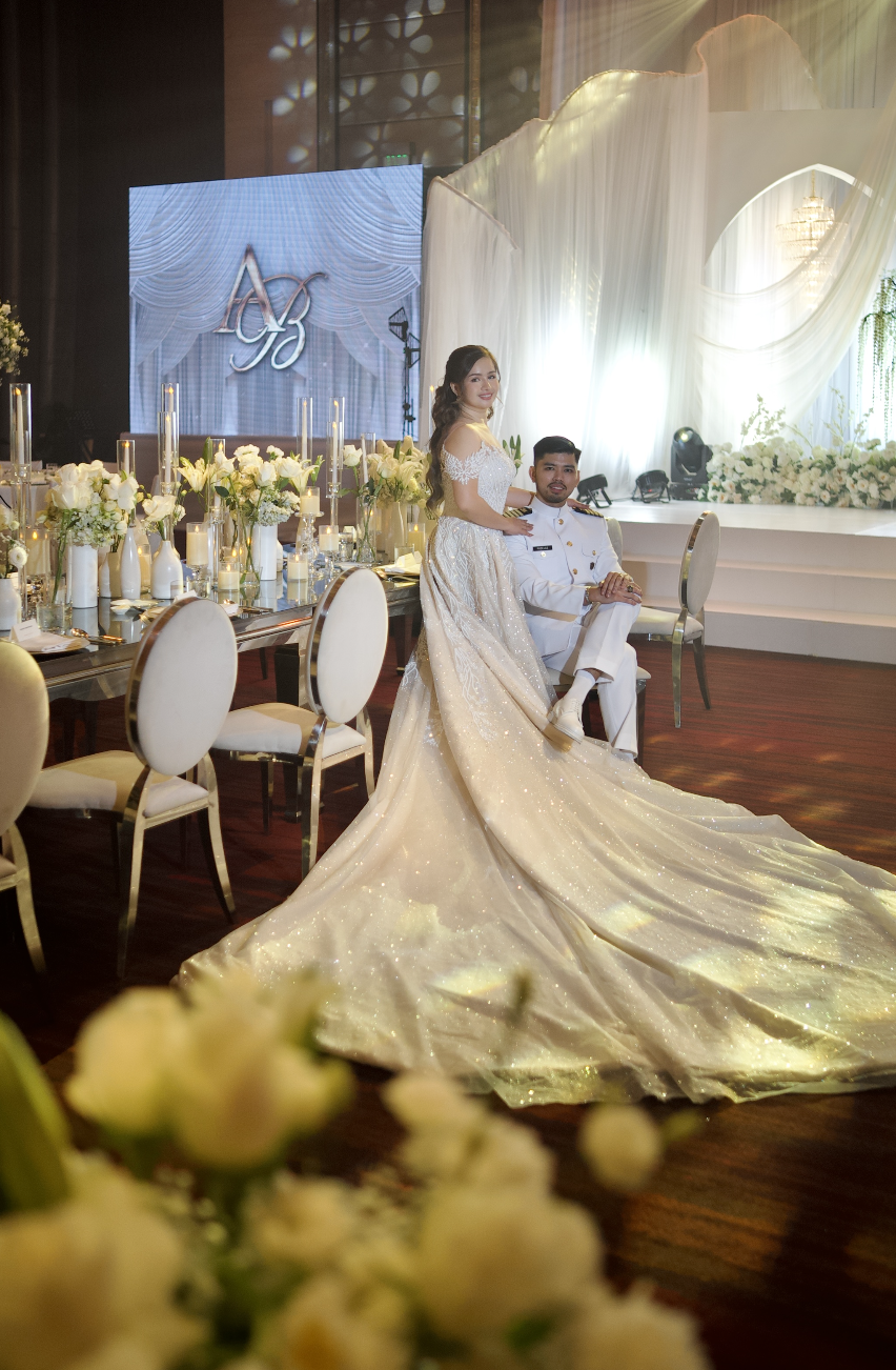 Their reception at Grand Hyatt Manila was a vision of timeless white-on-white elegance, oversized draping, chandeliers, fresh blooms, and dramatic lighting. Their love story greeted guests at the pre-function area, along with a full Pao Larawan studio and a coffee cart that warmed hearts. Bianca and Adrian made sure every guest felt special with plated dinner service.