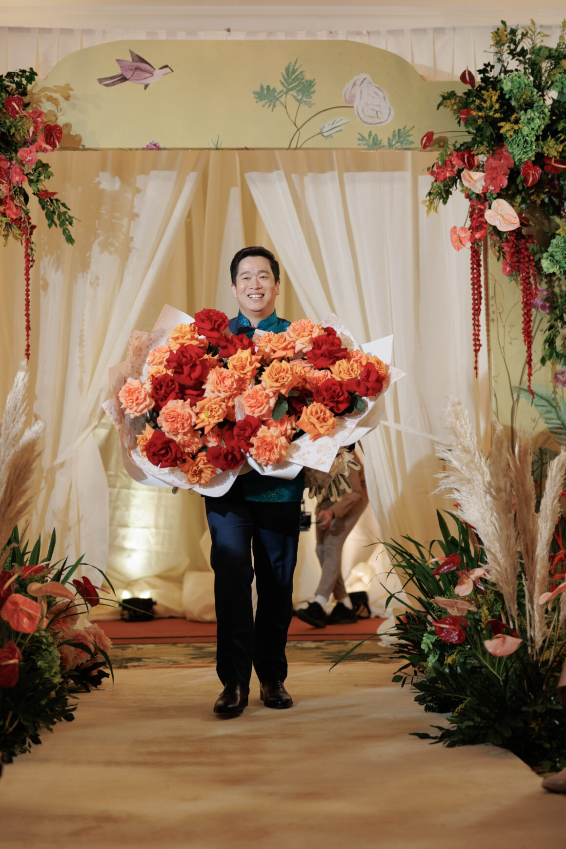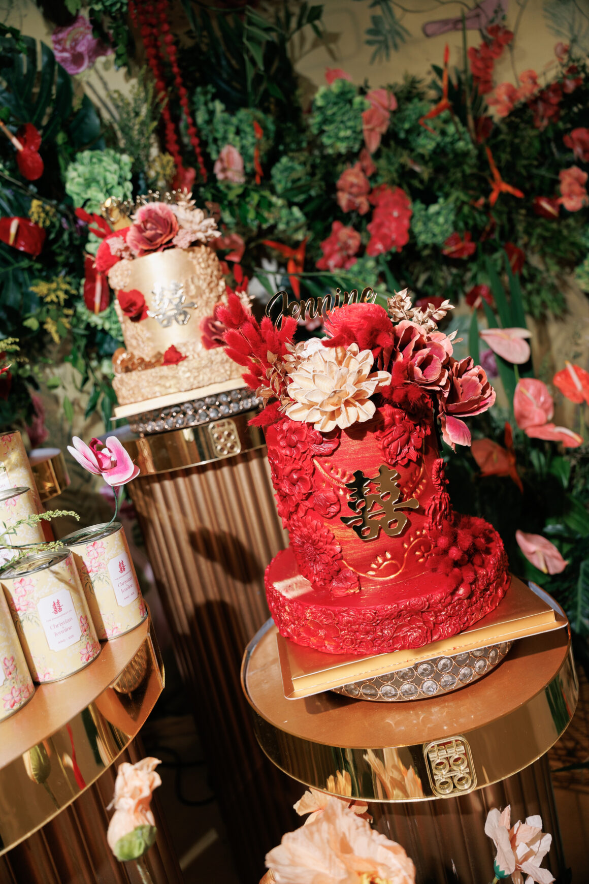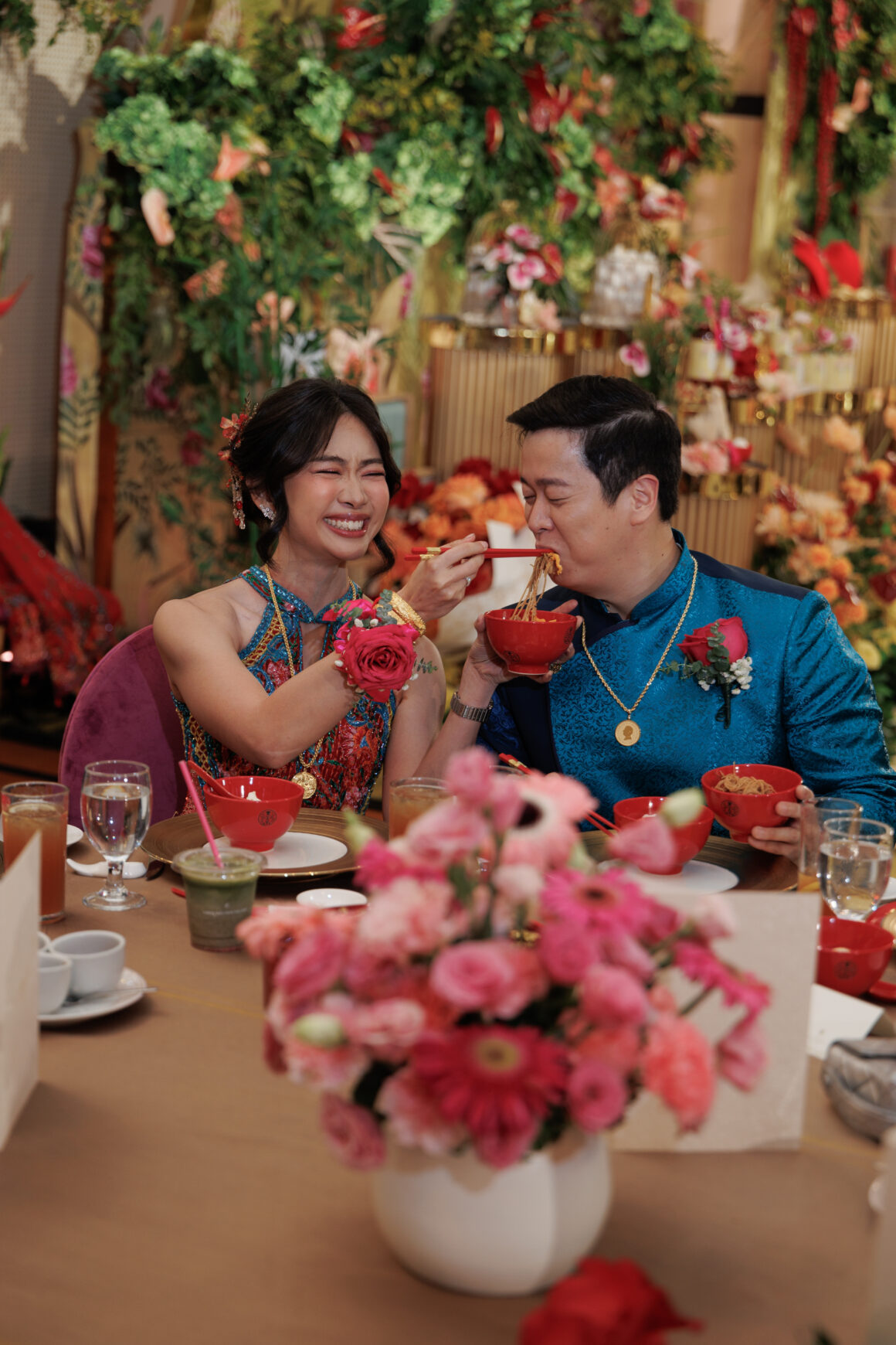 The celebration became even more vibrant with the couple’s special request for guests to arrive in Chinese-inspired attire. From intricate qipaos to modern interpretations, the room transformed into a visual feast.